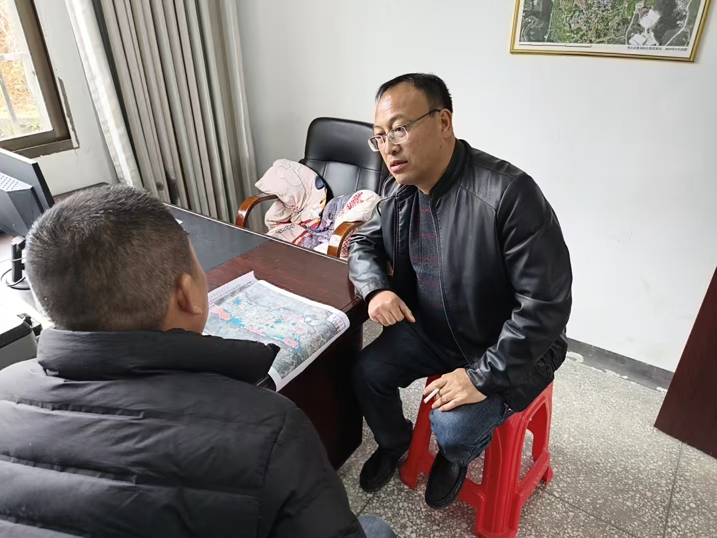 与平凯街道矮坳村村书记对接集体林地流转工作