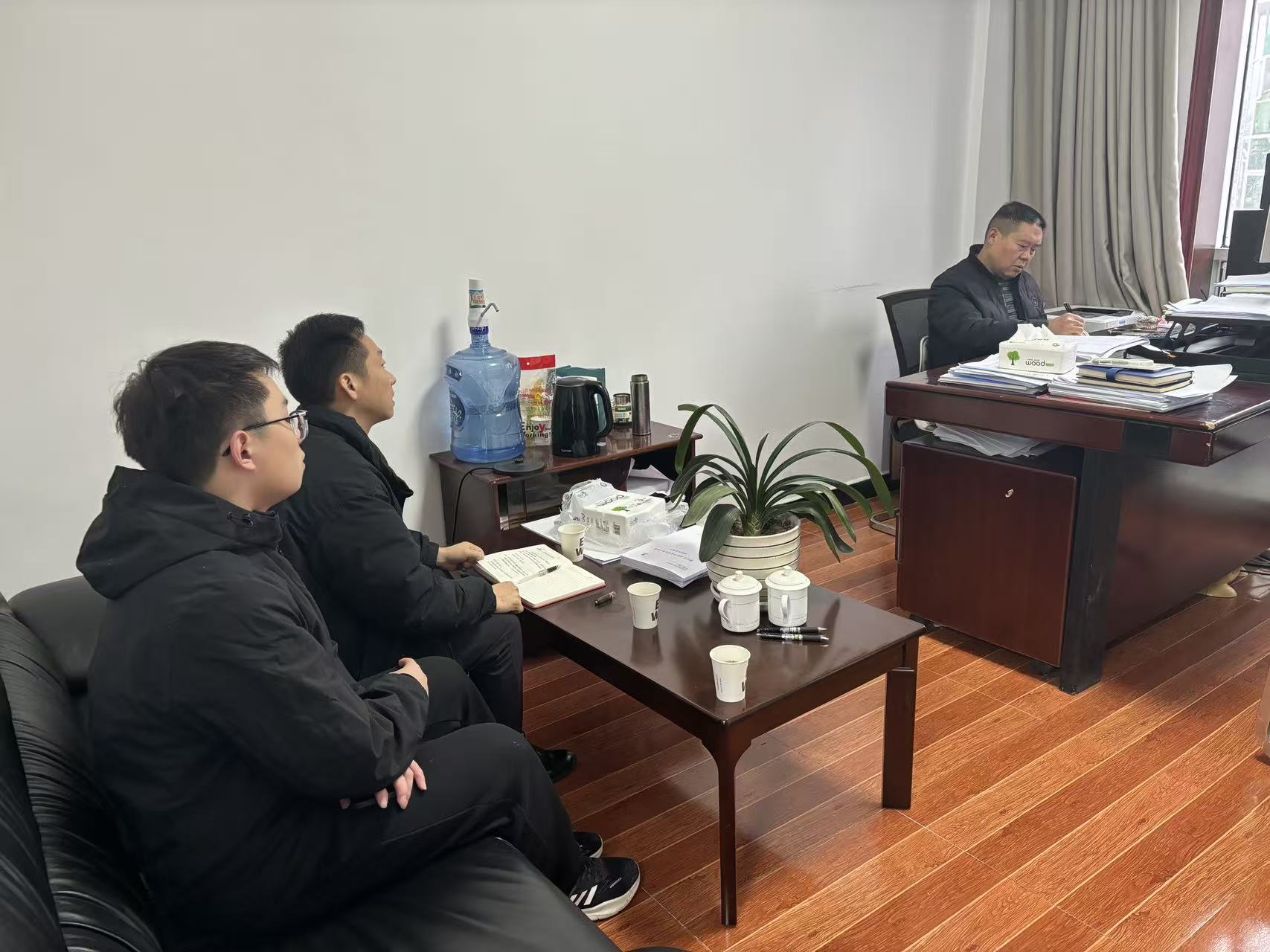 向梅江镇书记、镇长汇报国家储备林相关工作